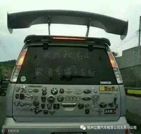 我是一个车标,我也不知我来自何方,将去何处,某天醒来发现自己的屁股后面被小屁孩写了好几个字“4X4=15”,结果她妈“啪”的打了她一耳光。