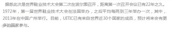 葡萄牙当地时间5月17日上午9点,为期两天的第20届世界鞋业技术大会(UITIC)在波尔图正式拉开了序幕。此次会议主题为“从时尚到工厂:开启新技术时代”,由国际鞋业技术联合会(UITIC)、葡萄牙鞋业技术中心(CTCP)和葡萄牙鞋业鞋材及皮革制品制造商协会(APICCAPS)共同主办。会议吸引了来自中国、意大利、法国、西班牙等全球众多鞋业组织及全球制鞋专家的参与,参会人数逾500人。