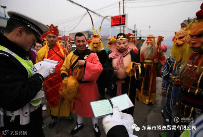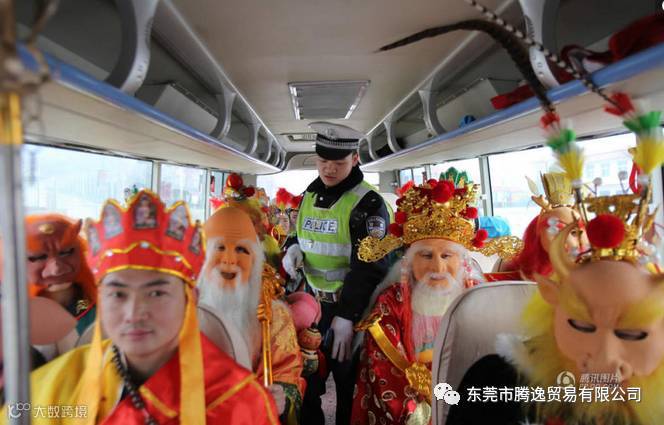 “唐僧师徒”、“财神”、“土地”、“小钻风”、“牛魔王”、“狮子精”、“白骨精”等等,西游记中多位神仙和妖怪同车而坐,真是让人感觉反倒像是交警被“穿越”了。