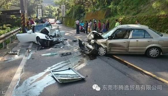台湾新北市石碇区106县道53千米处,23日上午8时许发生一起车祸,一辆福特轿车疑超车不当撞上对向保时捷,两车的车头几乎全毁,所幸2车驾驶仅受轻伤并未受困,送往万芳医院救治。