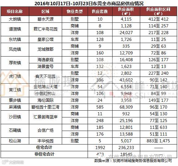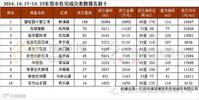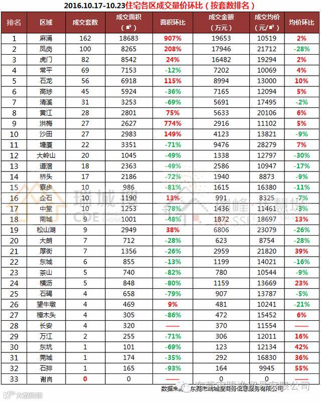 上周,东莞仅有两个镇街住宅成交套数超过百套,分别为麻涌和凤岗。