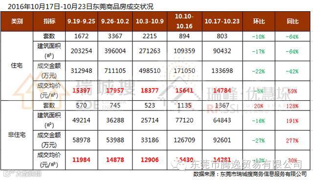 根据东莞市瑞城搜商务信息服务有限公司数据监测显示,上周东莞一手住宅成交803套,环比下降10%,成交均价14784元/平米,环比下降5%。其中,上周东莞有15个镇街房价环比下滑,但仍然有15个镇街房价环比上涨,个别镇街涨幅较大。