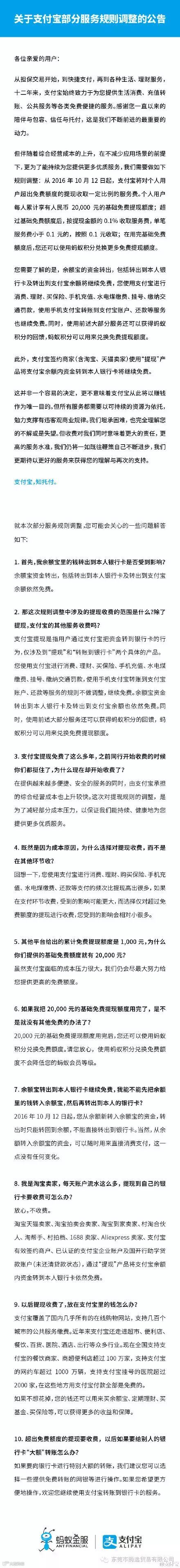 以下是支付宝的公告