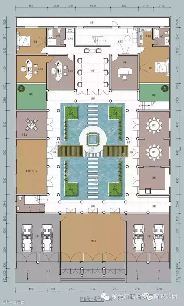 现在农村建房子视野开阔了,很多人崇洋媚外,效仿国外的别墅风格建房子,殊不知,洋别墅再好,有我们中式的四合院号吗?下面这套四合院占地22.2mX38m,占地面积846㎡,建筑面积1075㎡,共设11室 6厅 1厨 8卫 1洗衣房 2办公室 2KTV 2回廊 2庭院 2车库。