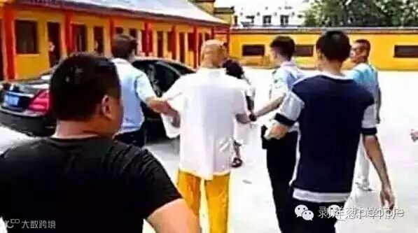 这是安徽蚌埠警方实施的一次抓捕行动。被带走时,广闻法师身着白色宽松上衣、黄色僧袍裤子,没有任何反抗,表情平静。