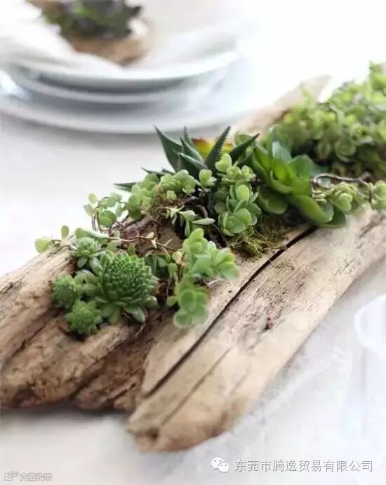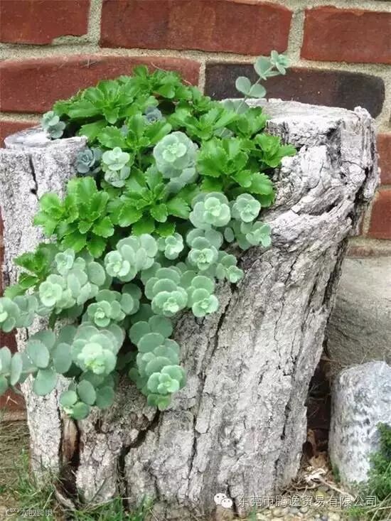 原来枯木真的可以逢春的哦,绿植完全可以种在枯木桩子里。