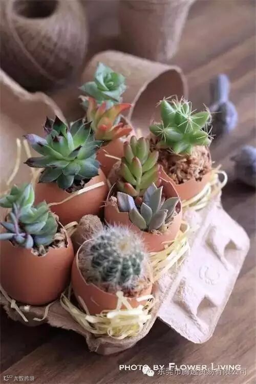 多肉植物是最适合栽在蛋壳里边的,这样的微景观是不是很可爱。