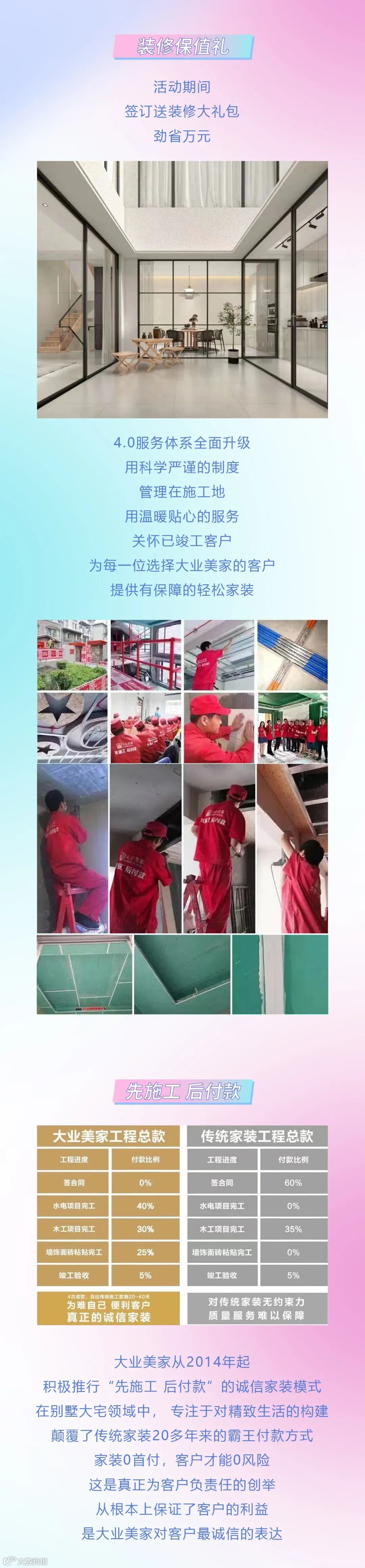 北京大业美家家居装饰集团专业为别墅、大宅客户提供验房、室内设计、施工、主材选购、配饰等全案设计和一站式家居装饰服务。 大业美家在中国提出“先施工、后付款”为成功人士打造高品质精致家居生活。东莞分公司官网:dg.dayemj.com