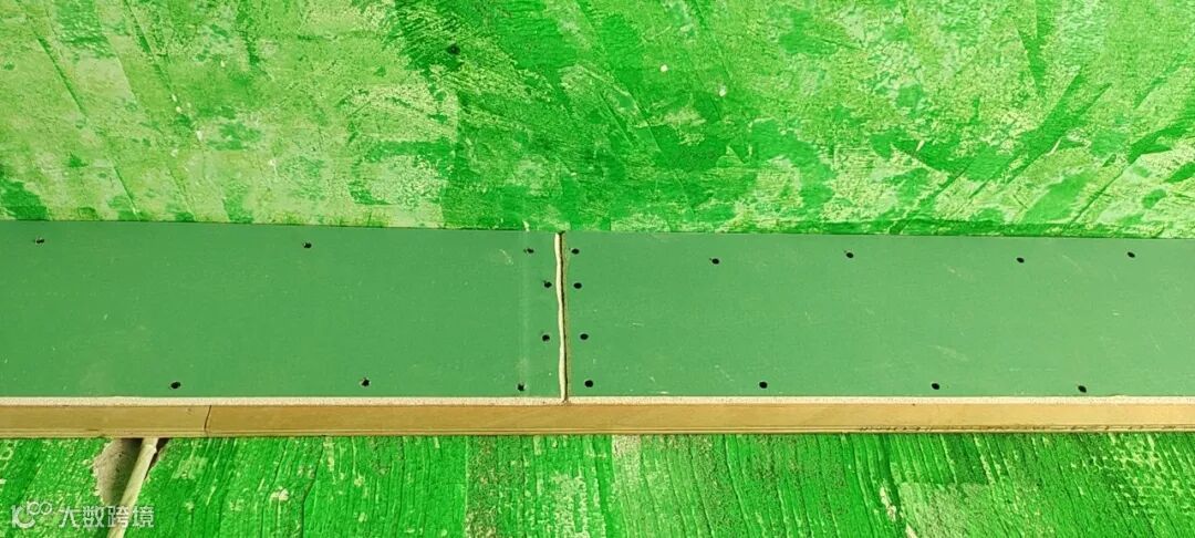 大业美家石膏板拼缝之间采用V型槽工艺,并且底部预留2mm间隙缝,确保后期拼缝间能够充分填充腻子