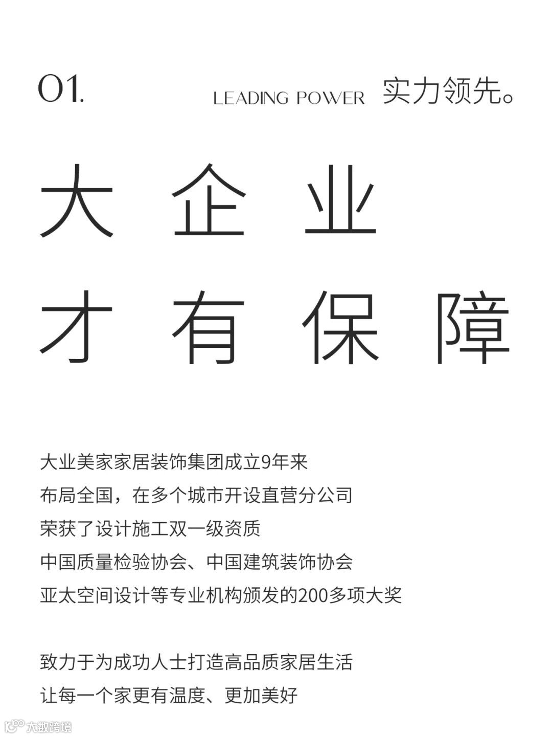 北京大业美家家居装饰集团专业为别墅、大宅客户提供验房、室内设计、施工、主材选购、配饰等全案设计和一站式家居装饰服务。 大业美家在中国提出“先施工、后付款”为成功人士打造高品质精致家居生活。东莞分公司官网:dg.dayemj.com