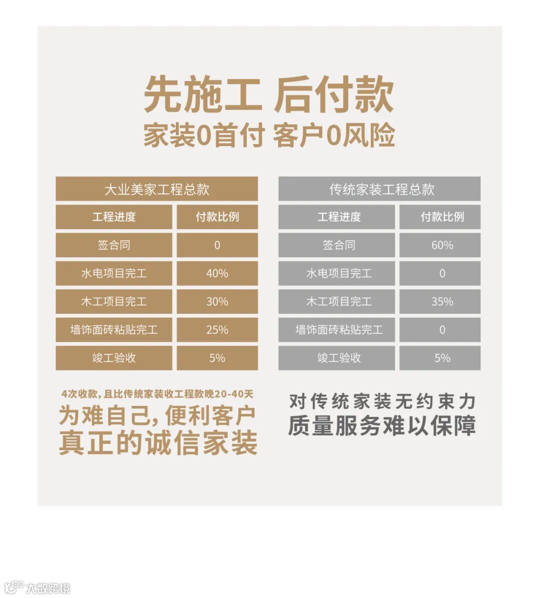 凭借其敢为人先的创新模式和经营理念,从客户利益出发,带动了整个家装行业标准与理念的升级。大业美家在中国家装行业首创“先施工,后付款”的诚信经营模式。这种成就客户,为难自己的服务模式源于王云先生的利他思想。