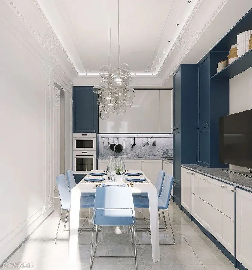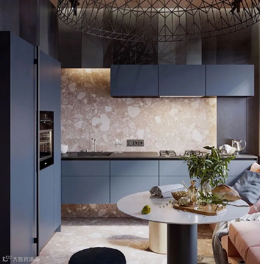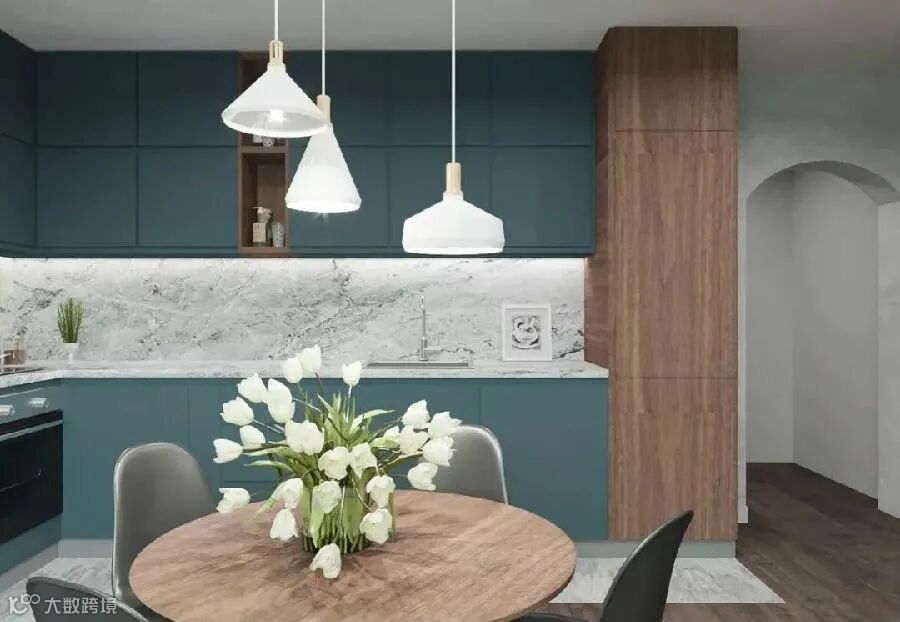 蓝色橱柜也很常见,