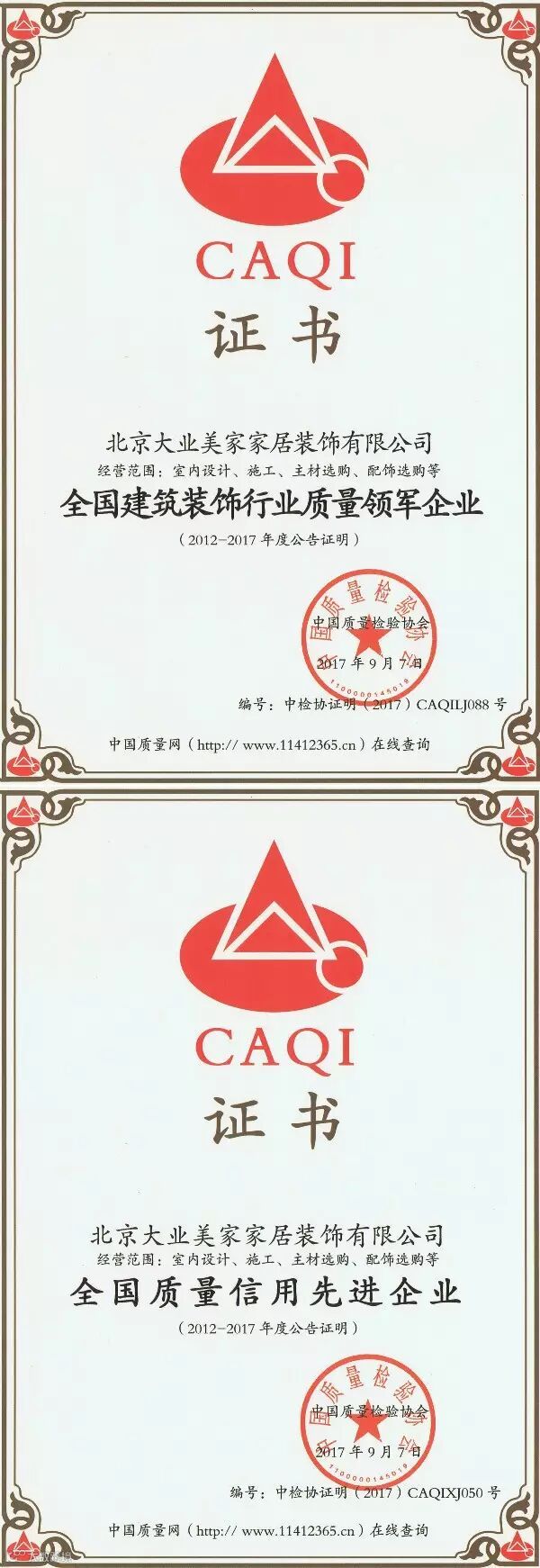 此次荣获《全国质量信用先进企业》和《全国建筑装饰行业质量领军企业》双项证书是荣誉,更是责任,将继续鞭策大业美家人更加重视施工质量,服务质量,把更美好的家居生活呈现给客户。