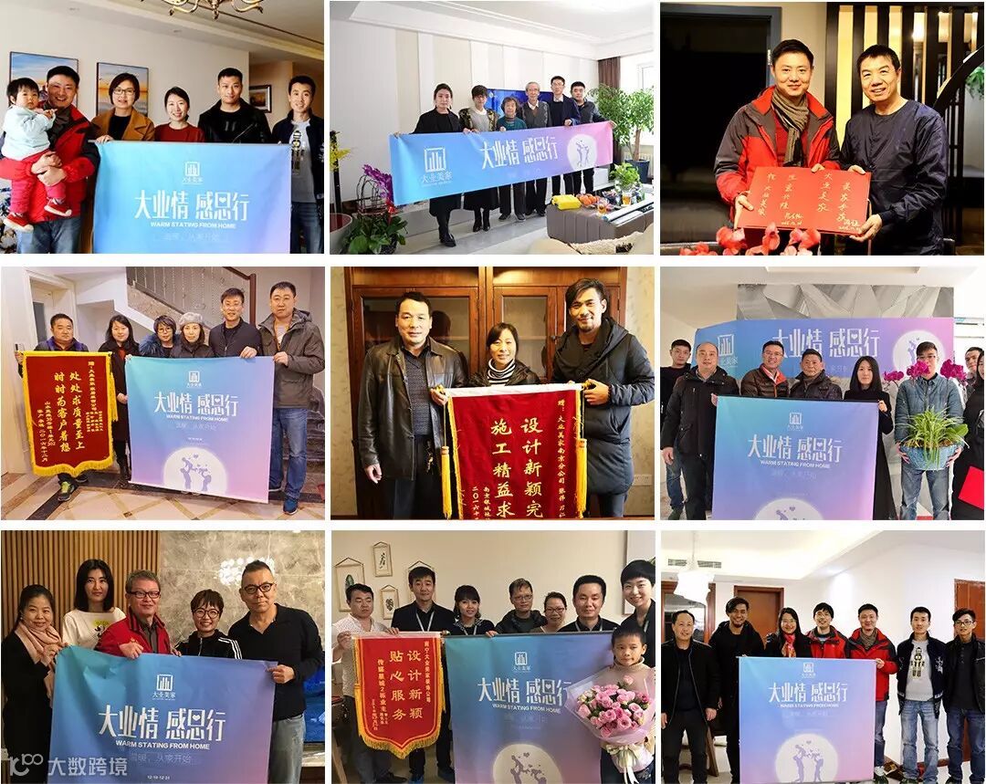 对于竣工客户,大业美家每年都会组织2次为期4个月的“大业情 感恩行”活动,该项目由集团总部统一组织,12家分公司全国联动,由分公司总经理带领客户服务团队感恩拜访竣工客户,及时解决客户提出问题,向客户赠礼并表达谢意。