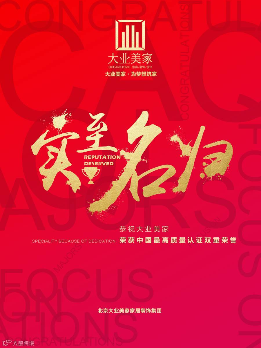 此次获得中国最高质量的认可,是对大业美家科学管理及诚信经营的肯定和褒奖,今后大业美家将继续对全体员工强化“爱家、专业、诚信”的核心价值观,为推动家装行业更高质量体系的建设贡献新力量。