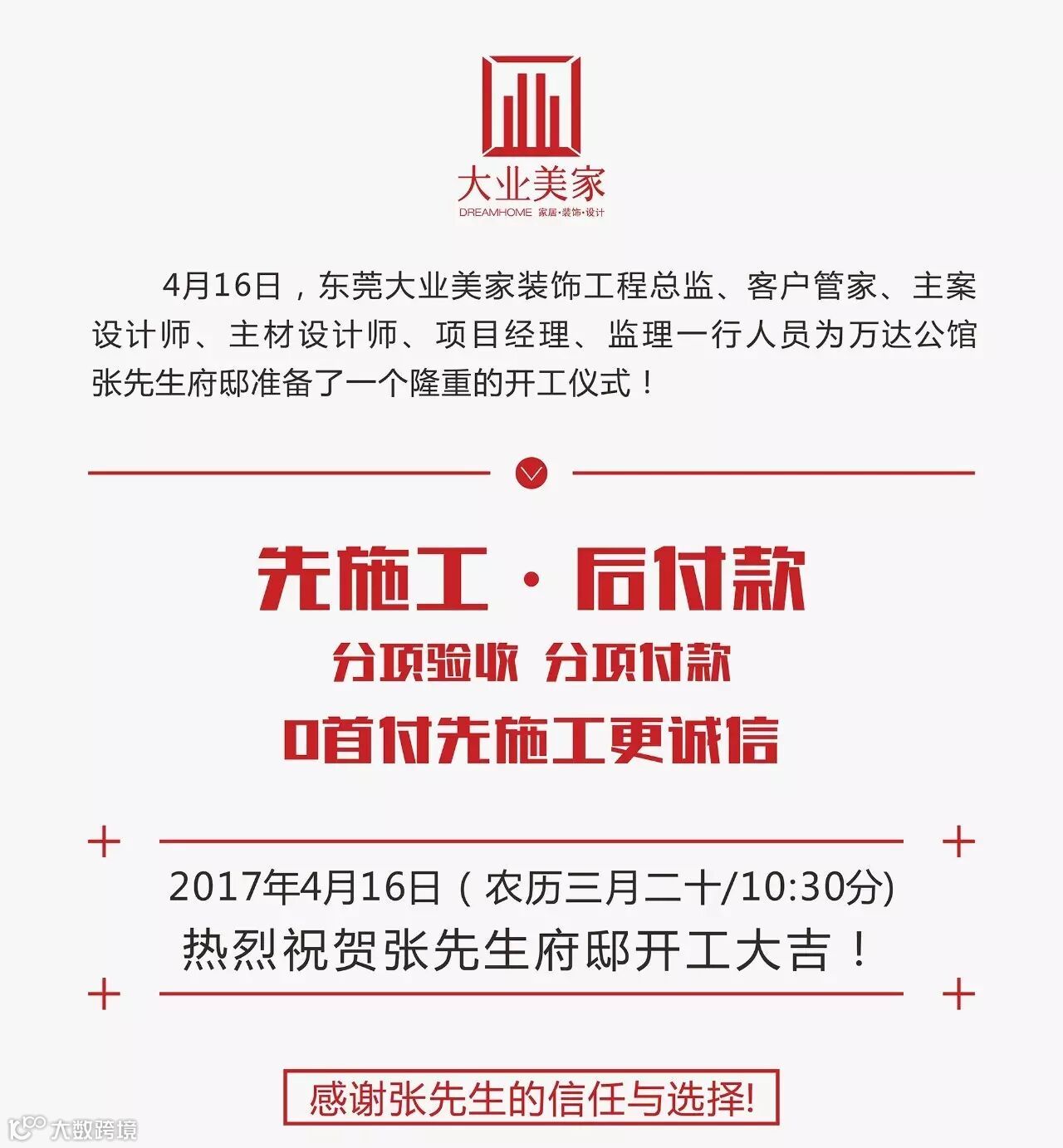 【开工仪式】热烈祝贺万达公馆张先生雅居装修开工大吉 大业美家装饰东莞分公司
