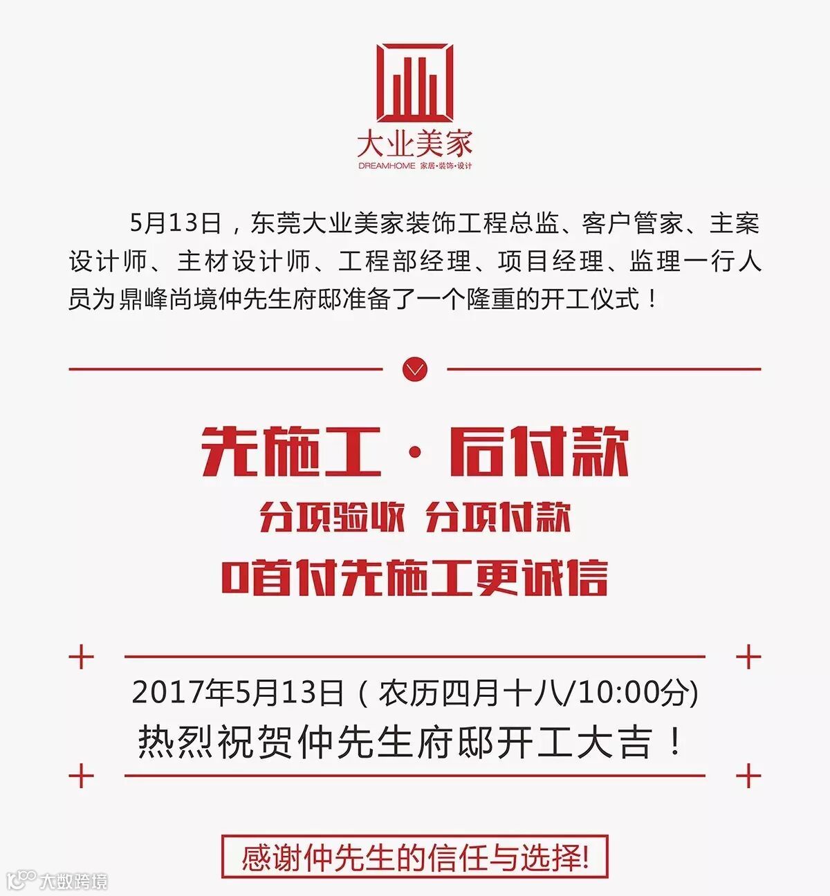 【开工仪式】热烈祝贺鼎峰尚境仲先生雅居装修开工大吉 大业美家装饰东莞分公司