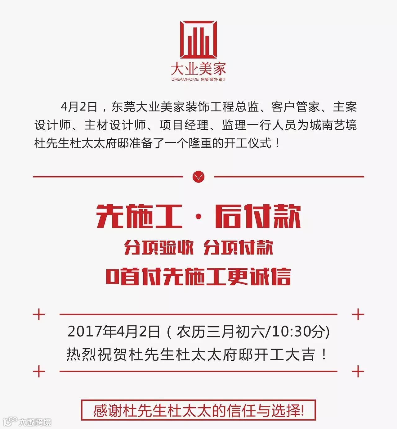 【开工仪式】热烈祝贺城南艺境杜先生杜太太雅居装修开工大吉! 大业美家装饰东莞分公司
