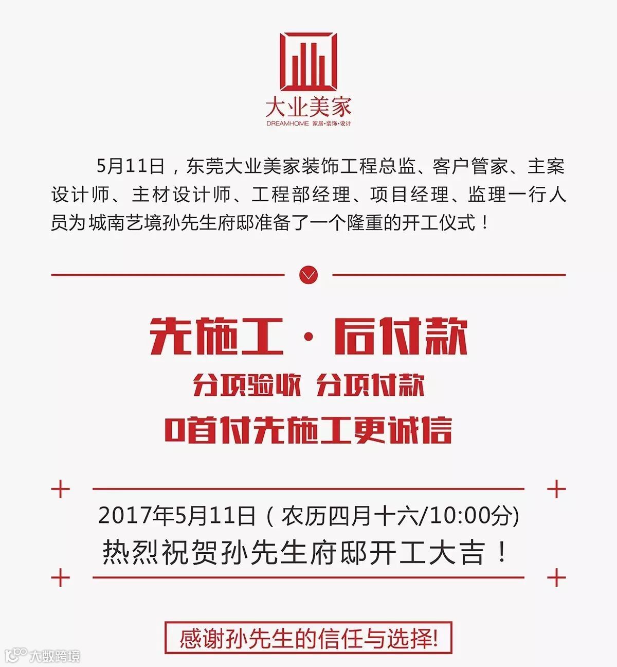 【开工仪式】热烈祝贺城南艺境孙先生雅居装修开工大吉 大业美家装饰东莞分公司