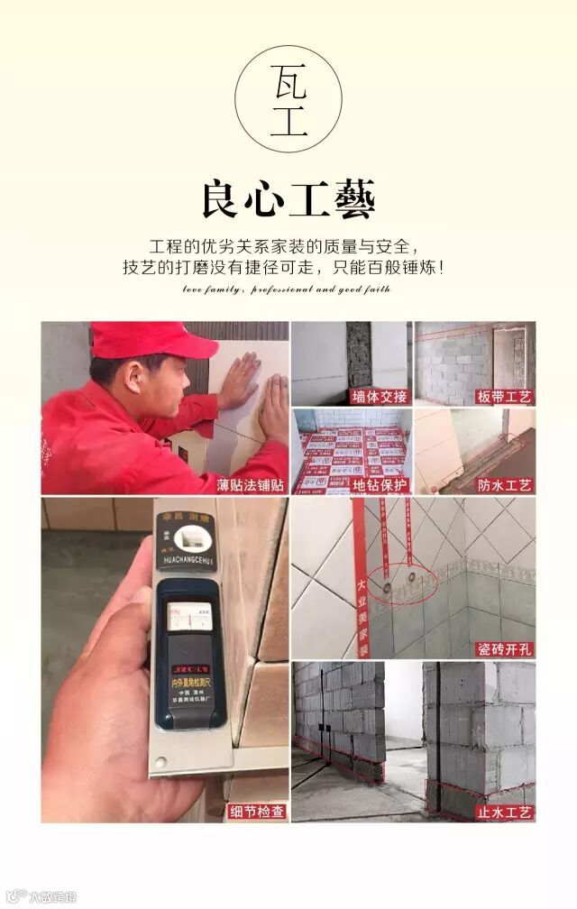 大业美家致力于把每一个工地做成样板房,服务好每一位客户,尤其重视施工工地的把控,严格监管施工质量,总经理、工程部经理、项目经理、监理及设计师中监经理都会不定期到工地进行检查。力争以完善的施工吸引客户,以细致的服务逐步扩大大业美家在东莞的市场。