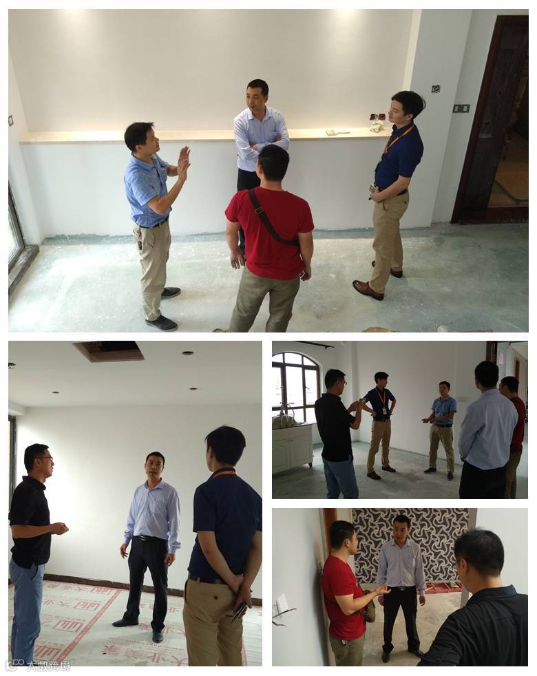王总不管细节多小,全部仔细检查一遍,不放过任何一处施工工艺及细节,然后结合北京总部的施工工艺和细节处理,给予评价和指导!