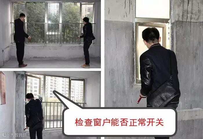因为房子建成的时间较久,门窗也有点旧了,天台的门甚至已经被拆掉。曾工还是把所有的门窗都反复开关数次,确认门窗是否能正常工作。