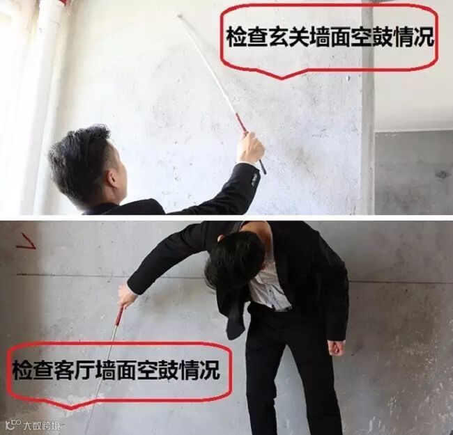 如果敲击的声音比较沉闷,说明墙面比较实也比较牢固;反之如果发出“咚咚”清脆的声响,说明存在空鼓。