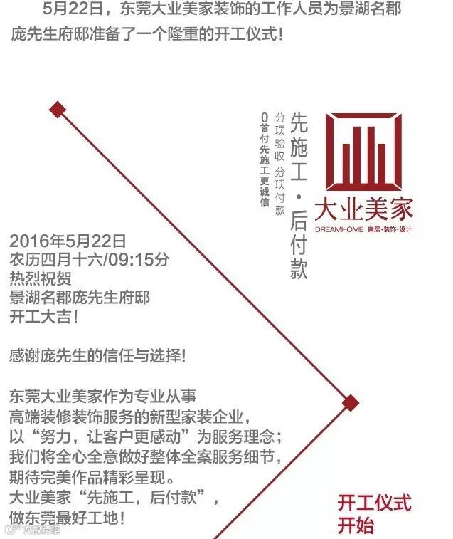 开工仪式只是家居装修的开始,后期的施工欢迎广大业主参观、指导、监督,您的关注是我们进步的动力!