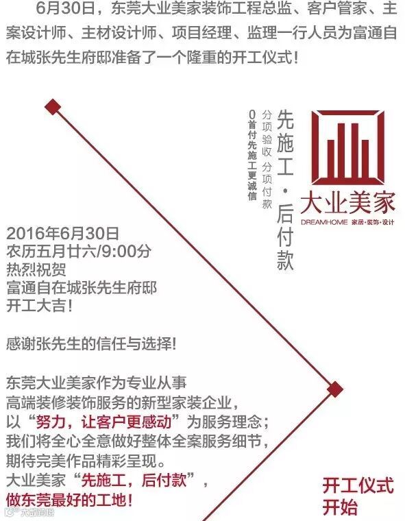 开工仪式只是家居装修的开始,后期的施工欢迎广大业主参观、指导、监督,您的关注是我们进步的动力!