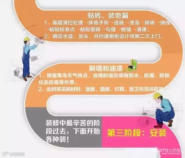 看过这张家居装修流程图之后,是不是感觉自己一下从菜鸟晋级为装修新手了呢,赶紧收藏起来吧!有了理论知识的储备,接下来就开始摩拳擦掌准备大干一番装修了。不过在真正动手装修之前,还是要要多看看其他细节方面的装修攻略哦!