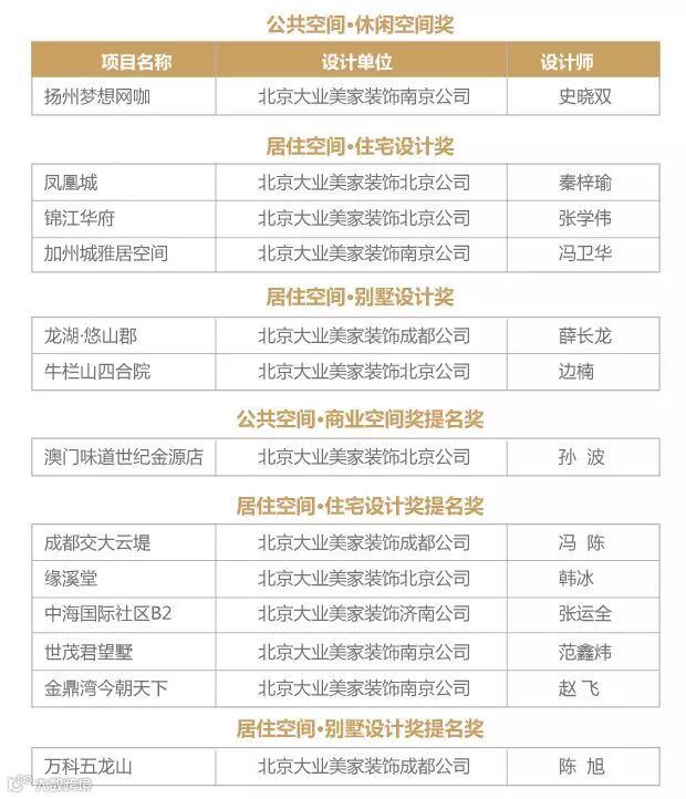 附:“2015居然杯CIDA中国室内设计大奖”北京大业美家家居装饰有限公司获奖名单