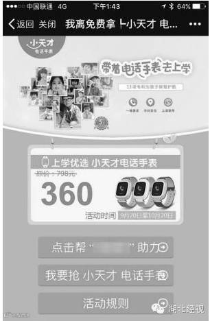 “点击帮××助力,原价798元的小天才电话手表免费拿。”遭遇过“微信砍价”的李女士表示,在帮朋友砍价到0元后,免费领取的按键就没有了,“这是明显的欺诈行为!”