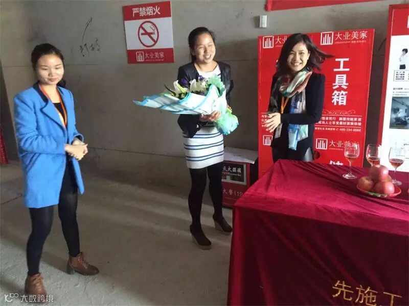 设计师给业主献上鲜花一束,恭喜业主开工大吉!