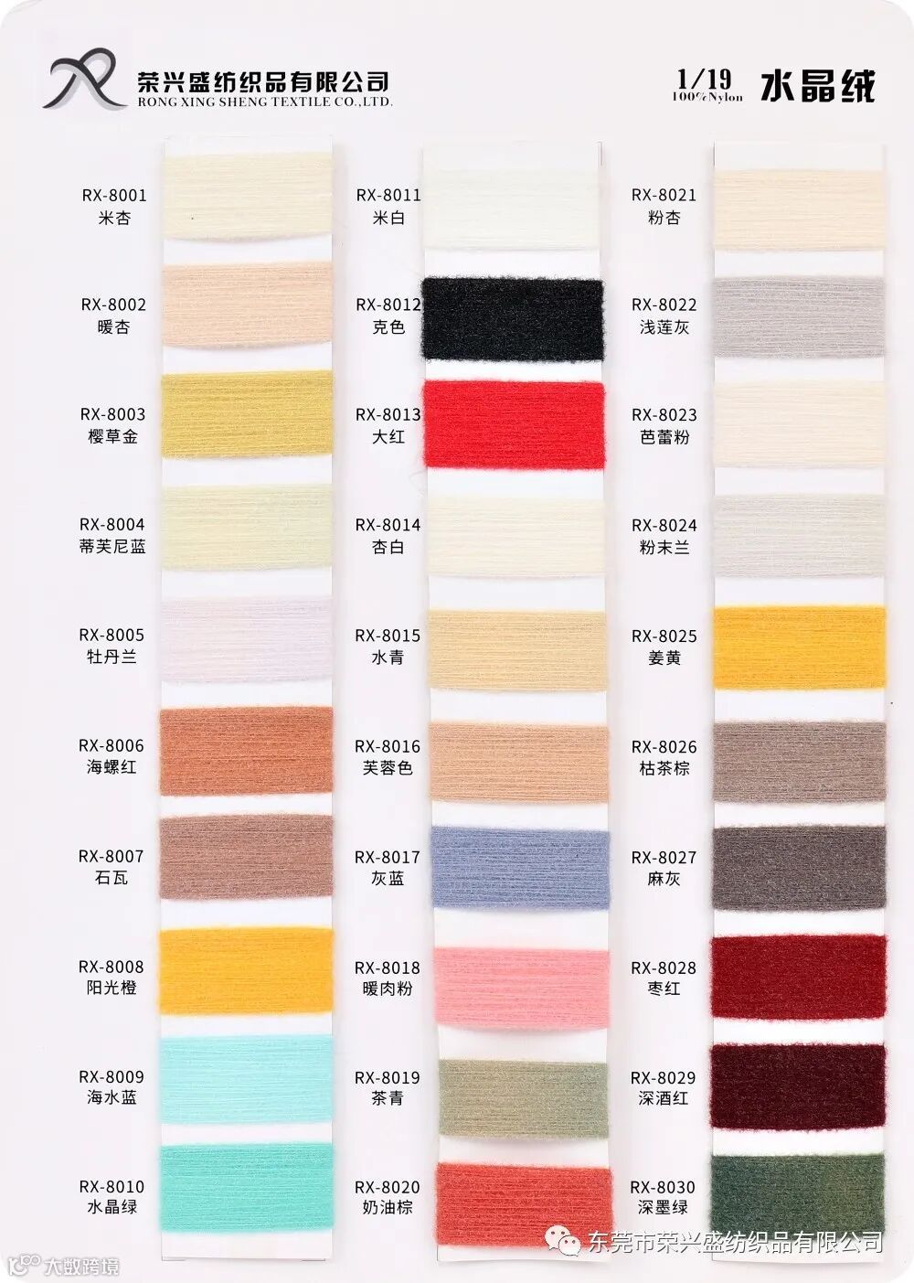 东莞市荣兴盛纺织品有限公司1/19NM水晶绒