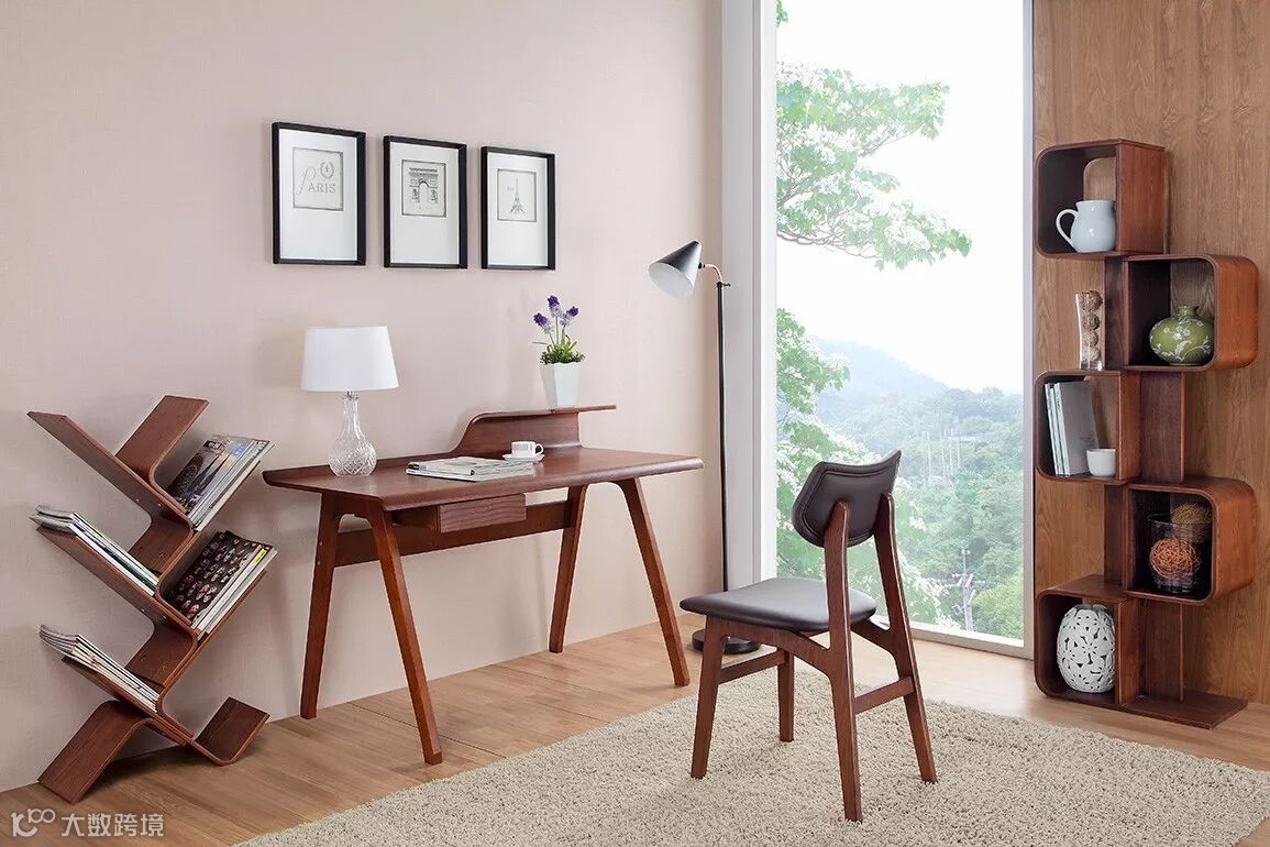 •墙面挂画拓展视野。抬头思考时,如果眼睛没有落点,思路很容易打结。挂上几幅画作,视野就能变得开阔起来,灵感也能纷纷涌现。抽象的几何画面与极简的书桌十分登对。