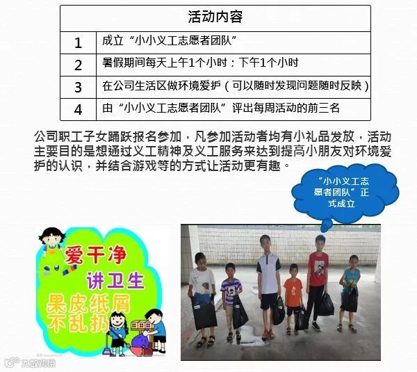 为了弘扬“奉献、友爱、互助、进步”的志愿者精神,公司于2019年7月22日开始举办暑假期间“小小义工爱护环境