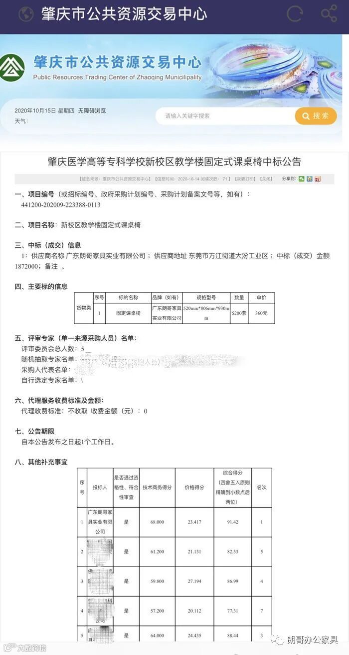导读:10月15日,我公司中标肇庆医学高等专科学校新校区教学楼固定式课桌椅项目,中标金额1872000元整,此次中标不仅证明了我司的能力与实力,还进一步展示了我公司在同行业中的竞争优势,更为我公司开拓市场的