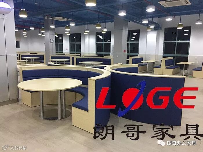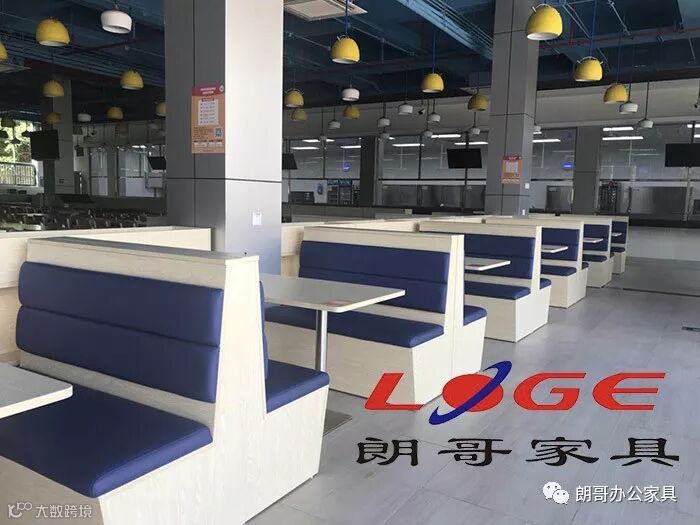 通过我们朗哥家具的搭配,可以看到中山大学的食堂,这个色调都是以蓝色调为主,充满着蓝色异域时尚风情!中规中矩的直线造型卡座沙发无疑会让人拘束,给人一种放不开的感觉。而半圆设计的卡座沙发则不同,不仅装饰性更好,异性设计还给人一种放得开的感觉.半圆形卡座沙发还能给客人早就一个相对独立的就餐环境,而常坐在餐厅卡座区的学生基本上都是聚餐为主,同一个宿舍。