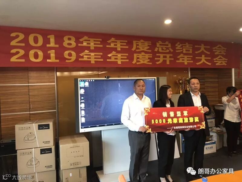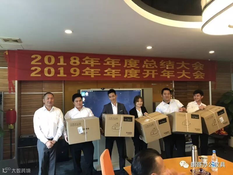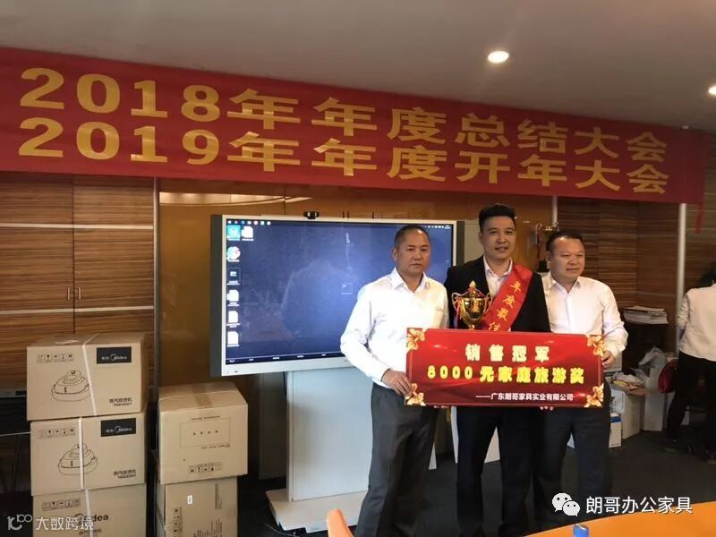 下午进行的是2019年年度开年大会,由朗哥家具董事长张总先是对业务业绩突破了上一年定的目标的2位员工进行颁奖、对2名销售冠军进行颁奖、对5名2018年优秀员工进行颁奖,最后还有给销售冠军团队颁奖。