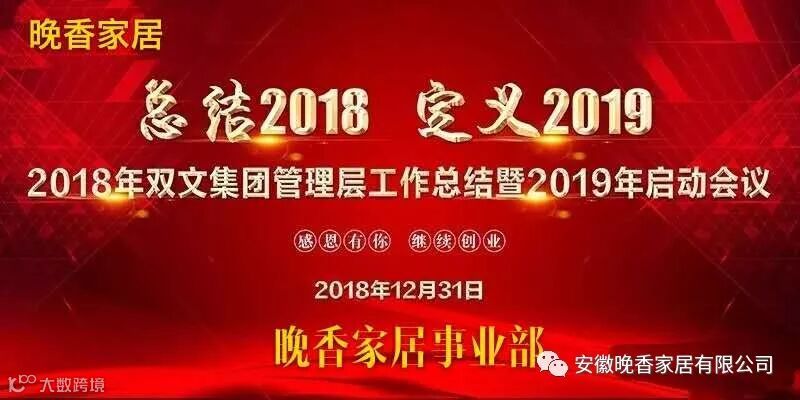 2018年12月31日,晚香家居(双文集团)管理层相聚合肥市香格里拉大酒店,召开2018年工作总结暨2019年工作启动会议;会议由集团副总经理姚维宏主持,各部门负责人分别就2018年工作总结和2019年工作规划作了详细汇报,集团董事长朱振才对集团2019年的发展规划作了细致阐述,并对集团战略目标作出了重要指示。