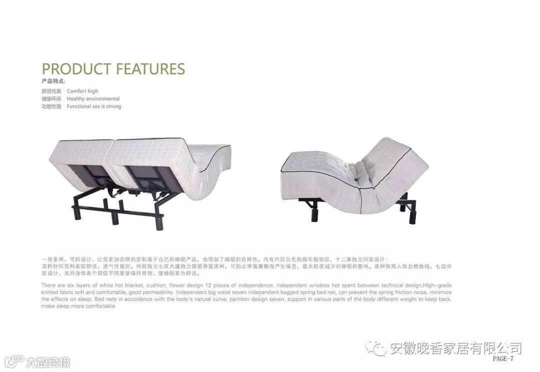 现在晚香家居已经在2018年就已经推出一款全自动电脑控制按摩系列床垫,可以根据个人睡眠的习惯和舒适区来调节床垫的造型,从而起到保护脊椎、营造舒适睡眠环境的床垫。