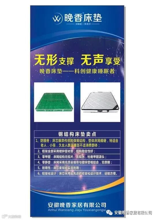 晚香家居睡眠中心研发不同系列的护脊床垫,让每一位消费者都能享受到健康护脊睡眠。2018年年底晚香家居专门为老年人和儿童设计了一款护脊床垫——钢系列,硬支撑、软贴服,零静音,正面舒睡安眠,背面精准承托,双面护脊,减缓人体压力,保持深度睡眠