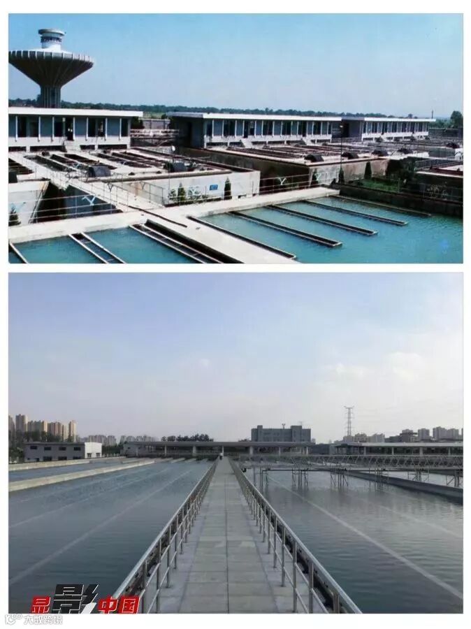 十四、城市供水之变 上图:上世纪90年代四水厂原滤池和沉淀池;下图:2018年4月新三水厂正在进行通水前的调试。