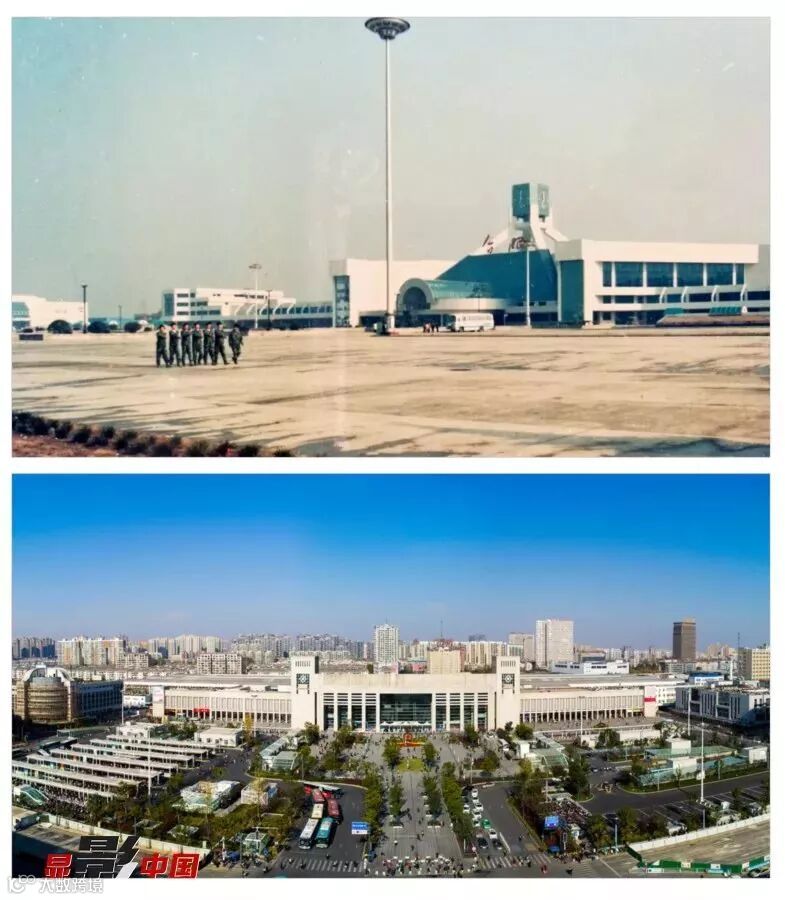 三、火车站之变 上图:九十年代初合肥新火车站;上图:今日合肥站。作者:宋业国(上)、孙友文(下)