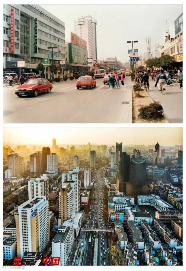 一、长江路之变 上图:九十年代初长江中路;下图:2017年底经拓宽改造后的长江路。作者:宋业国(上)、王牌(下)