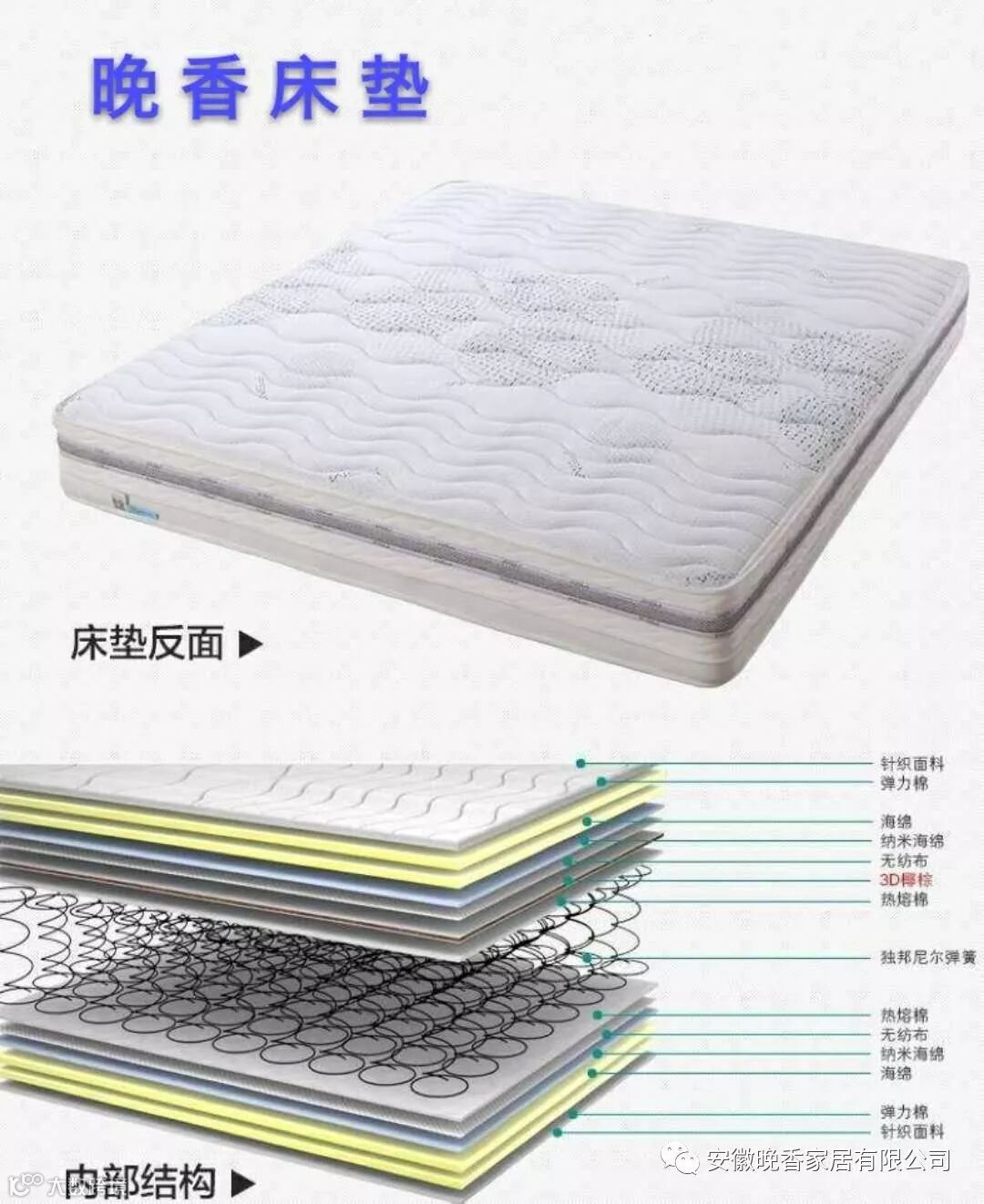 晚香床垫一家主攻深睡眠文化的企业,对国人的睡眠习惯有着深刻的研究,无论老人、小孩还是软硬适中的床垫,均有相适应的产品,同时晚香公司还有独立黄、袋装簧、3D立体纤维、无弹簧、按摩功能等各种床垫,以满足不同人群、不同消费群体的需求和需要。