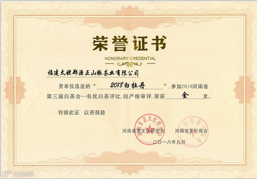 茶品:2018-正山脉·金奖白牡丹
