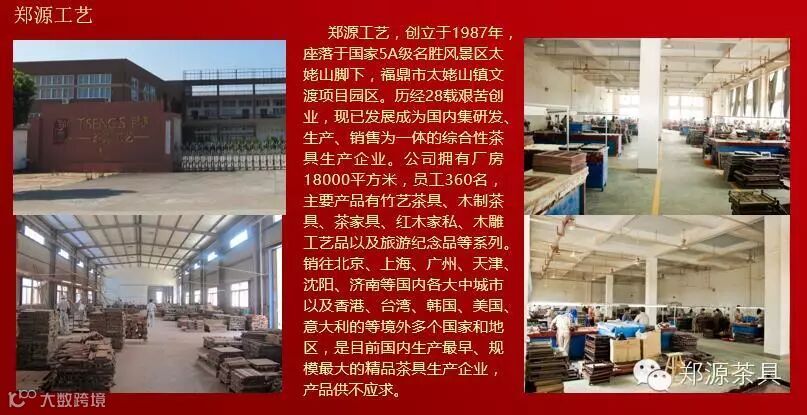 郑源公司,创立于1987年,历经20多载艰苦创业,现旗下拥有5家全资子公司,总资产约三亿元。是一家集红木家具、白茶基地、茶叶流通销售和旅游景点商业开发的综合性集团公司。公司产品远销国内外,是目前国内生产最早、规模最大的精品茶具生产企业。