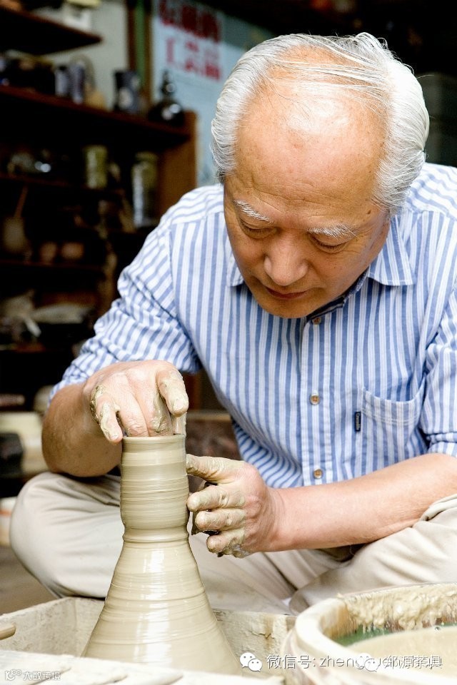 上图为: 日本常滑烧制壶大师非物质文化遗产传统技艺人北條