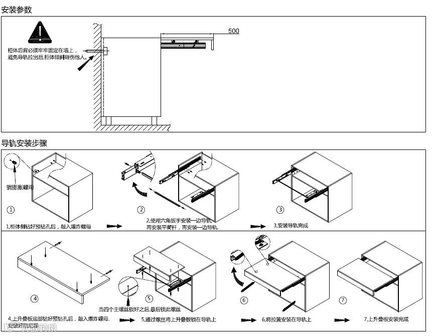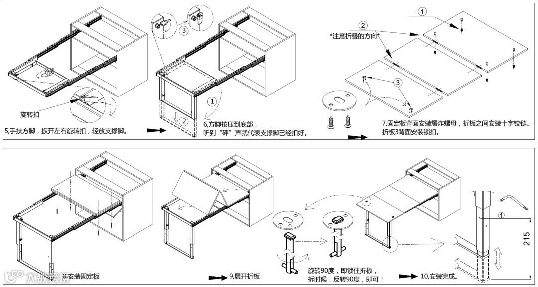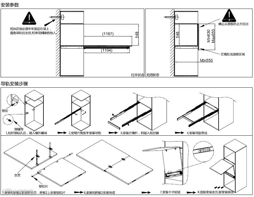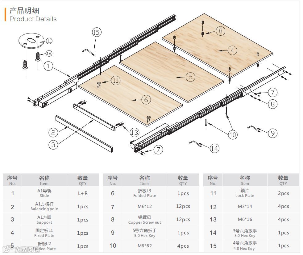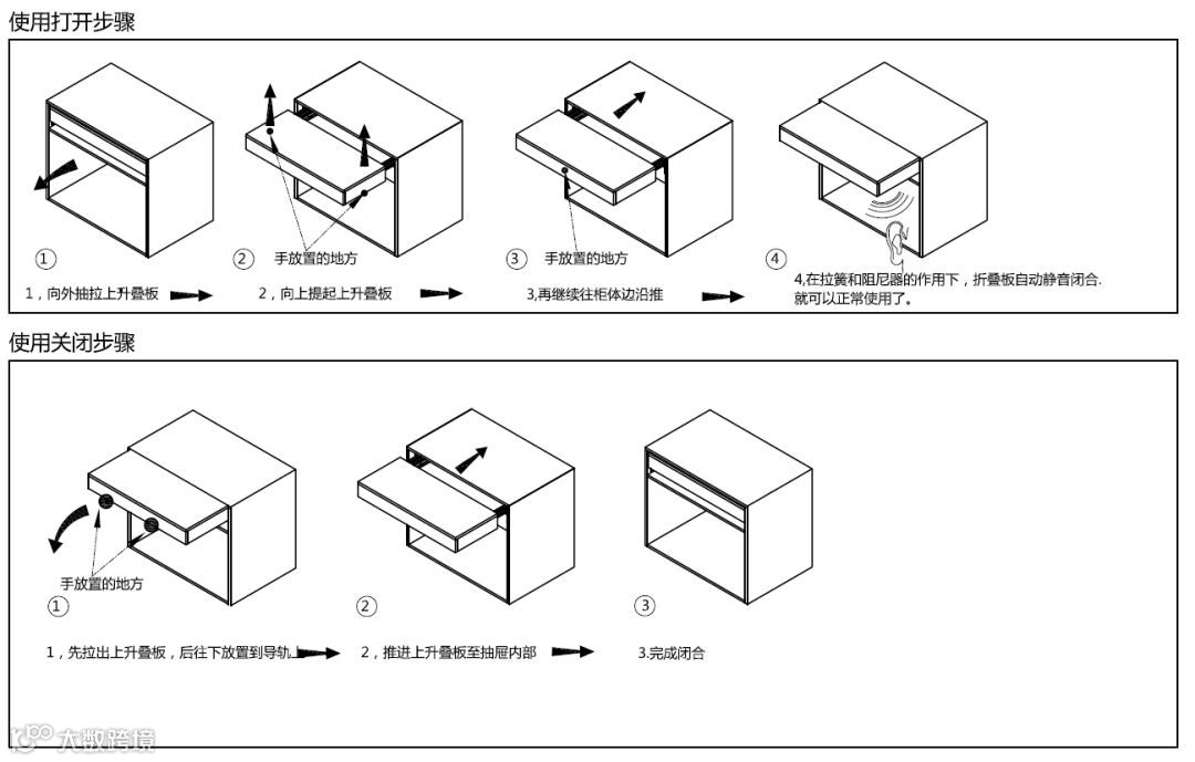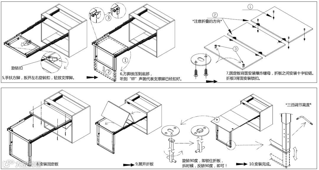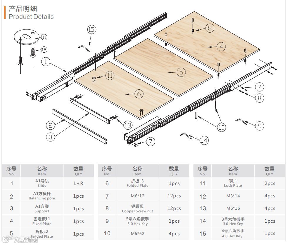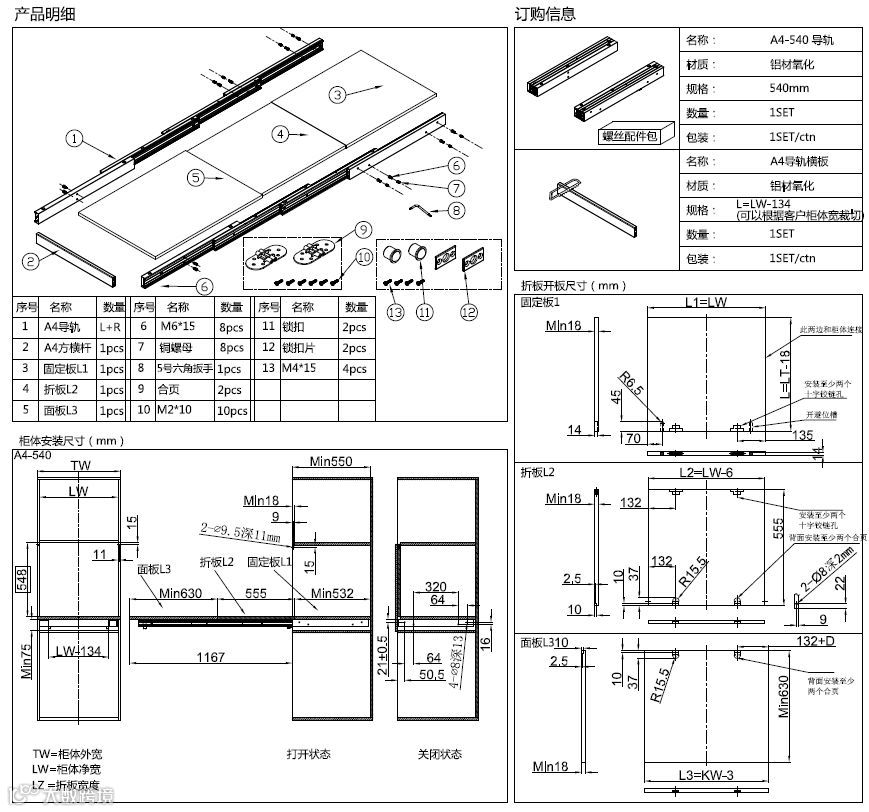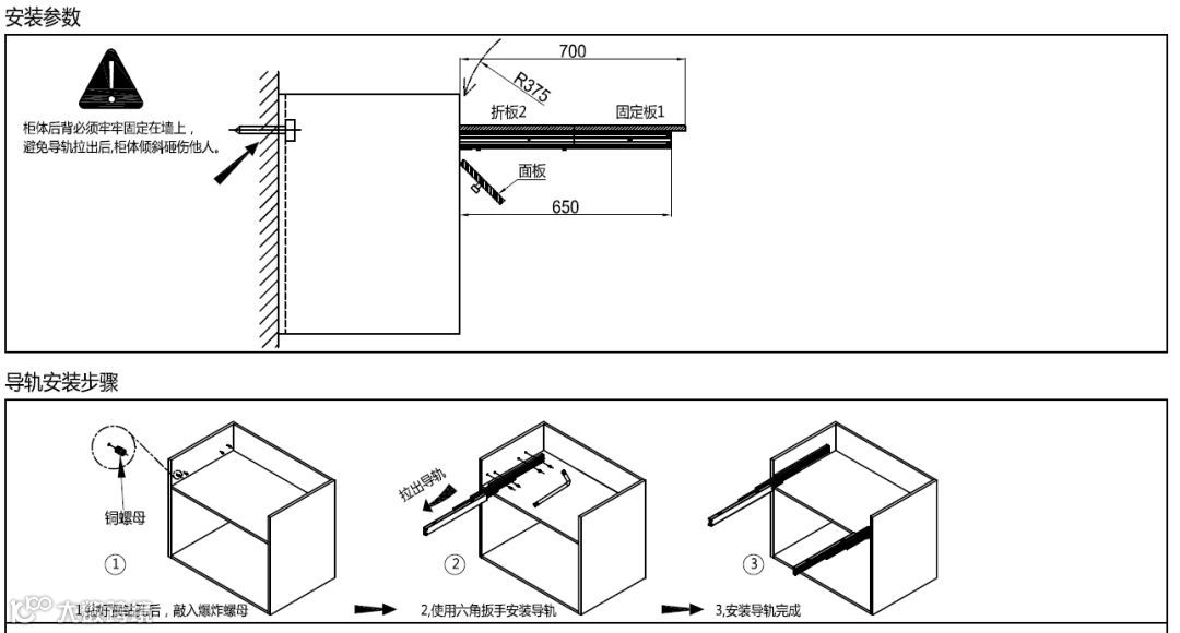全拉式抽屉具有最佳的存储空间和人性化使用方式,其创新设计的阻尼系统和静音滑轨的完美结合,使得抽屉只需轻碰就可轻柔、顺滑且平稳的关闭,给厨房给多的遐想、更多的空间。隐藏折叠抽拉餐台导轨系列具有最佳的使用空间,更符合人性化的使用方式,其创新设计给家居更多的体验。